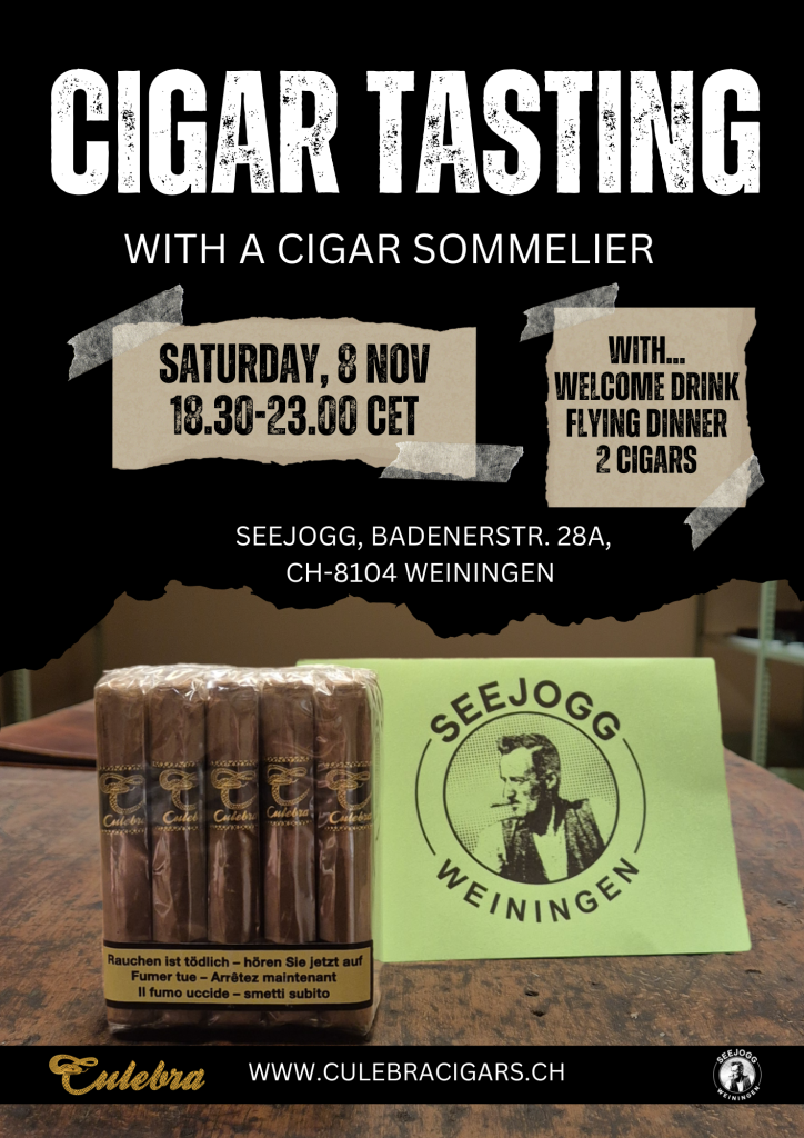 AFTER AN EVENT IS BEFORE AN EVENT – We are thrilled to invite you to a very special occasion: our first event with a cigar sommelier, Tiziano Marazza, hosted at the elegant venue Seejogg in Weiningen (https://www.seejogg.ch). 🗓 When: Saturday, November 8🕡 Time: 18:30 – latest 23:00 CET📍 Where: Seejogg,